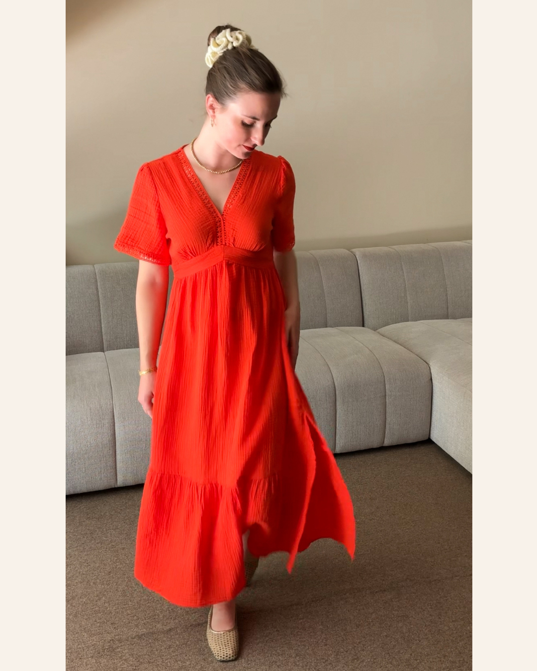 ✔️ True Parisian style ✔️ Comfortable and Breathable fit ✔️ Classic French Riviera Summer style ✔️ Feminine and flattering empire cut ✔️ Timeless coral colour ✔️ Easy to dress up or down